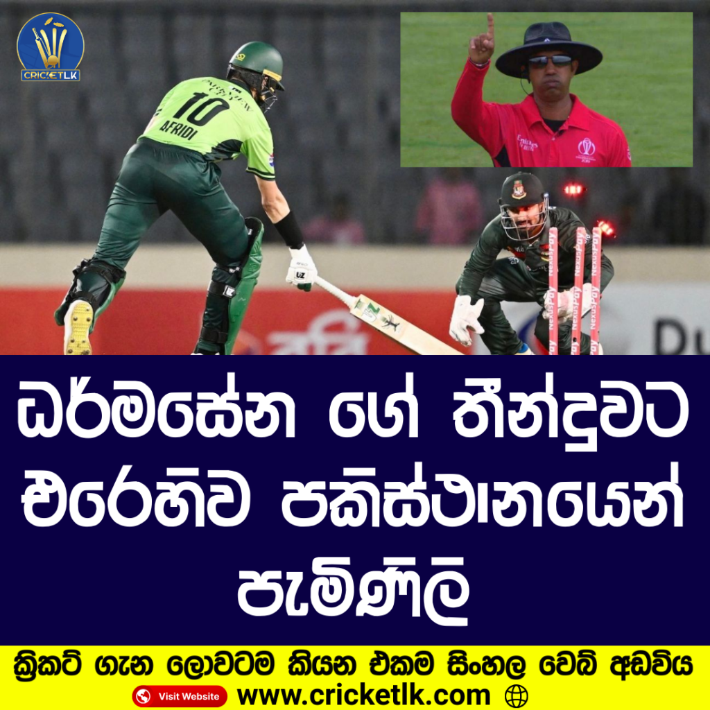 ධර්මසේන ගේ තීන්දුවට එරෙහිව පකිස්ථානයෙන් පැමිණිලි මීර්පූර් හි පැවති තුන්වන එක්දින තරගයේ අවසන් පන්දුවට පෙර පන්දුවෙන් බංග්ලාදේශයට LBW සමාලෝචනයක් ලබා දීමට පිටියේ විනිසුරු කුමාර් ධර්මසේන ගත් තීරණය සම්බන්ධයෙන් පාකිස්තානය තරඟ තීරක නීයාමූර් රෂීඩ් වෙත පැමිණිලි කර ඇත. පන්දුව නැවත ලබා ගැනීම තිරයේ දිස්වීමෙන් පසුව බංග්ලාදේශය සමාලෝචනය ලබා ගත් බවට පකිස්ථාන කළමනාකාරිත්වය චෝදනා කර ඇත. […]